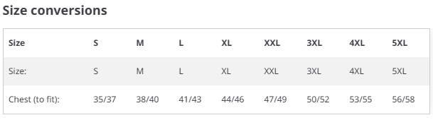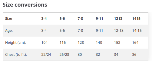 Sizes –